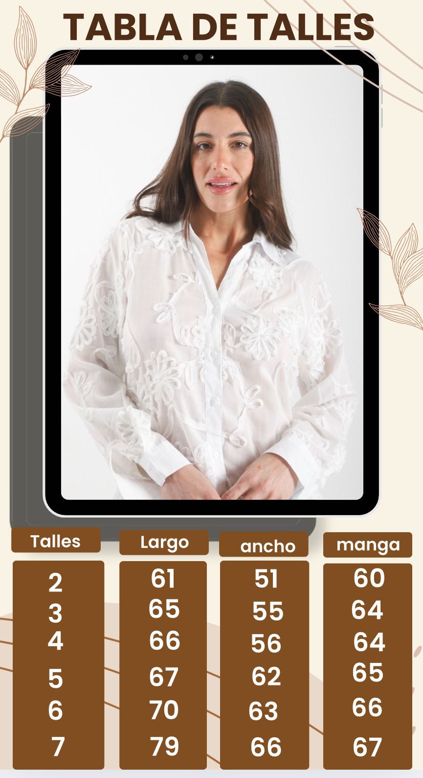 CAMISA ELDA BORDADA HOJAS